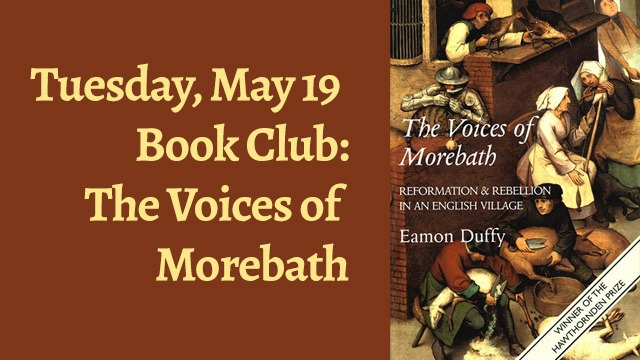 Join us in the Lower Annex Parish Hall (LAPH) on Tuesday, May 19, at 5:30 p.m., as we discuss our May book club selection: The Voices of Morebath, by Eamon Duffy. This classic of church history tells the story of how Henry VIII’s reforms affected the piety and practice of a small village in England. A very special guest will lead our discussion: local church historian Fr. Bill Stafford!
